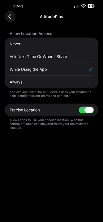 Ensure the "Precise Location" toggle is turned ON (Green).
