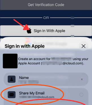 When the Apple prompt appears during sign-up, simply select Share My Email instead of "Hide My Email."